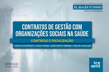 O Tribunal de Contas de Mato Grosso (TCE-MT) realiza, a partir da próxima quarta-feira (21), o curso Contratos de Gestão com Organizações Sociais na Saúde: Controle e Fiscalização, que terá duração de três dias. Proposta pelo Comitê Temático da Saúde, presidido pelo conselheiro Guilherme Antonio Maluf, a capacitação será promovida pela Escola Superior de Contas.
