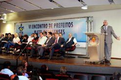 O presidente do Tribunal de Contas de Mato Grosso, o conselheiro Antonio Joaquim, proferiu palestra, na manhã desta quinta-feira (5), durante a abertura do VI Encontro de Prefeitos Mato-grossenses, em Cuiabá, que reuniu gestores de vários pontos do todo Estado. O evento tem como foco o debate de questões municipalistas, incluindo a análise crítica de propostas de desenvolvimento para as cidades mato-grossenses.