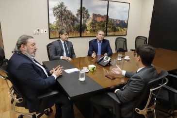 Ao lado do conselheiro Sérgio Ricardo, o presidente também falou sobre a recente suspensão do serviço pela na rede municipal de Cuiabá ao procurador-geral de Justiça Deosdete Cruz Júnior e ao coordenador do Centro de Apoio Operacional De Educação do MPE-MT, Miguel Slhessarenko Júnior.