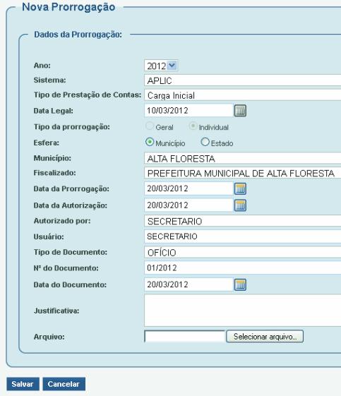 A justificativa pela qual está sendo feita a prorrogação;